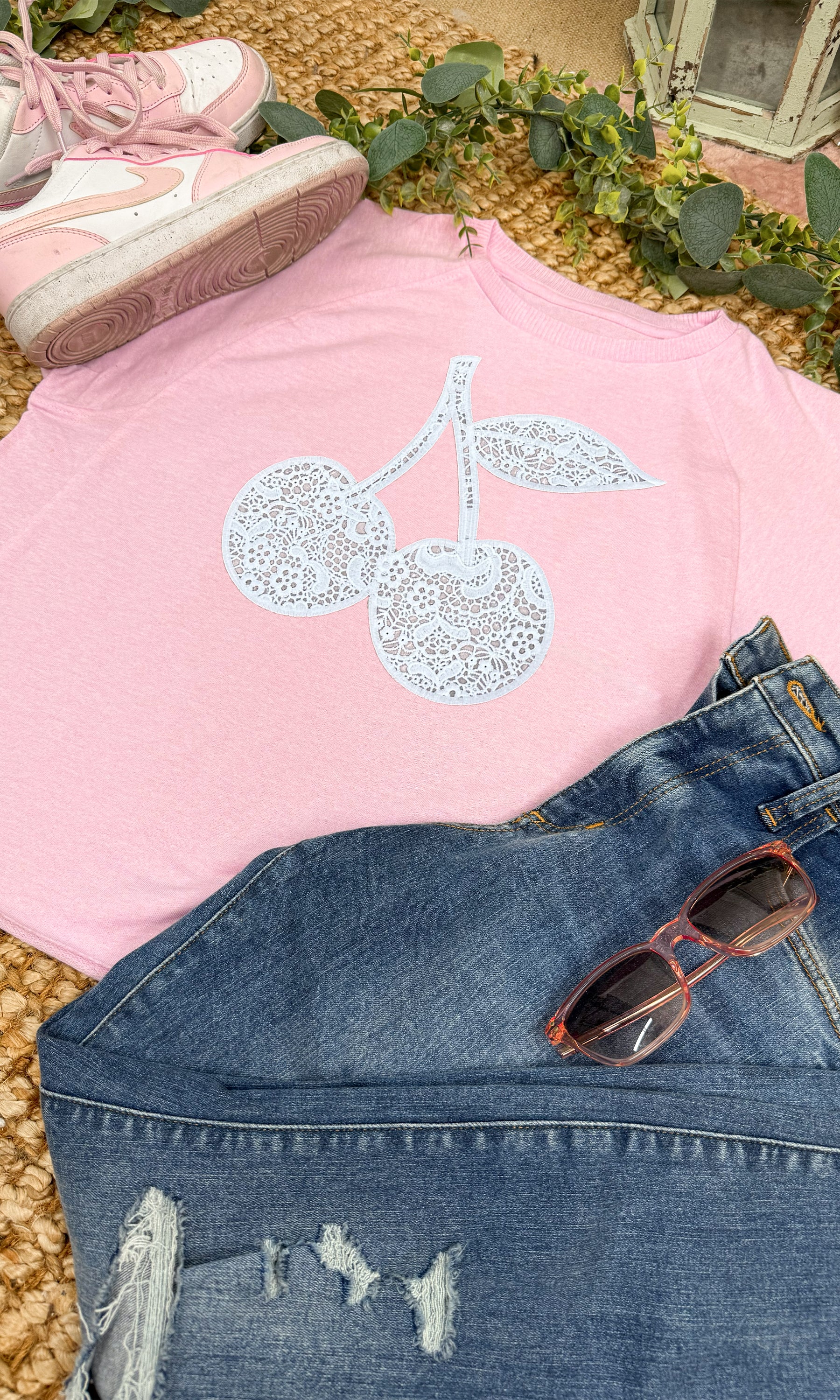 - Eye-catching Cherry Lace Graphic: A unique print that blends feminine charm with street-style attitude, designed to turn heads wherever you go.