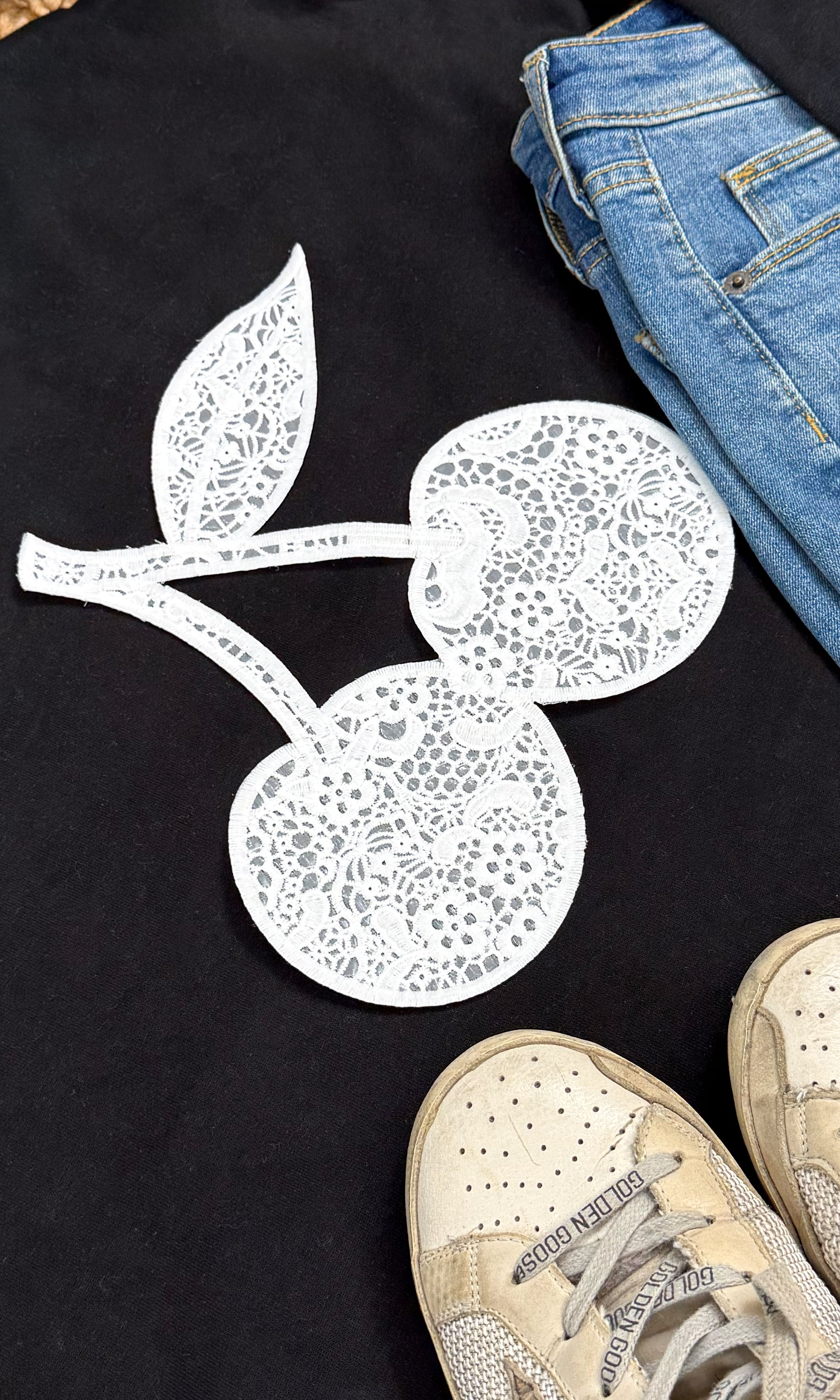 - Eye-catching Cherry Lace Graphic: A unique print that blends feminine charm with street-style attitude, designed to turn heads wherever you go.
