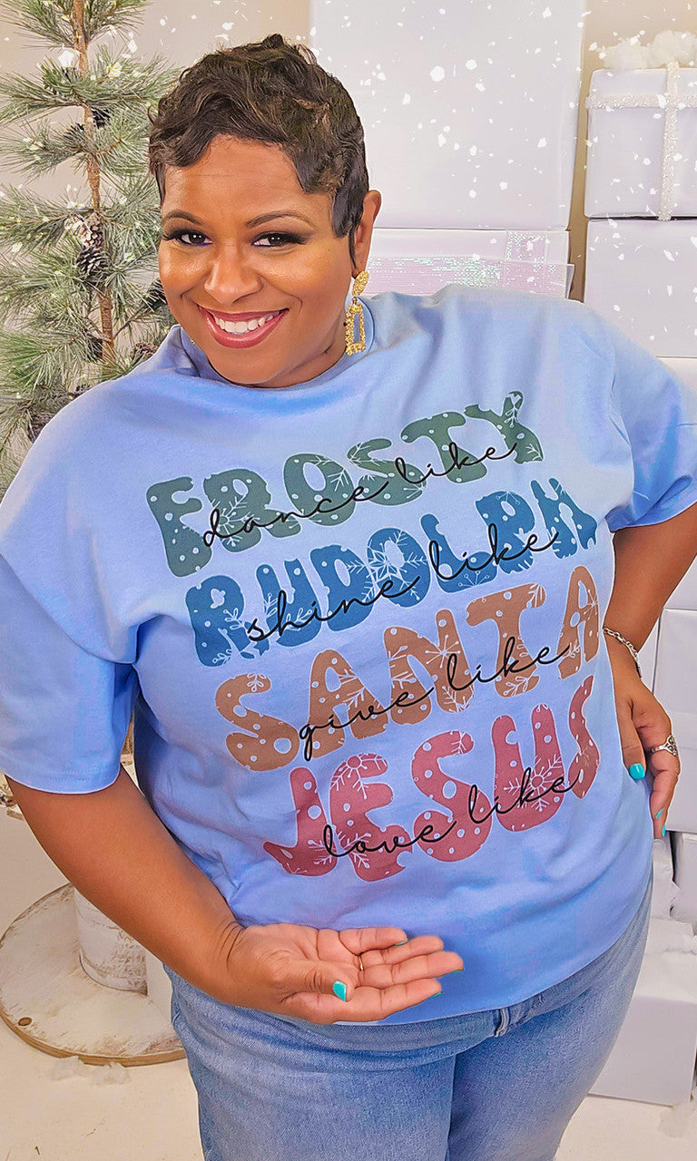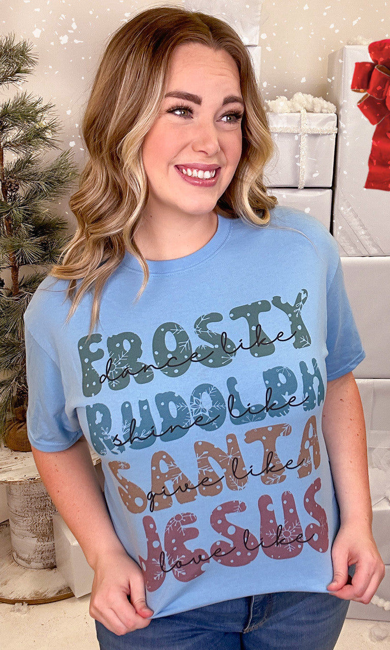 Product Title: Dance Like Frosty Love Like Jesus Graphic T-Shirt