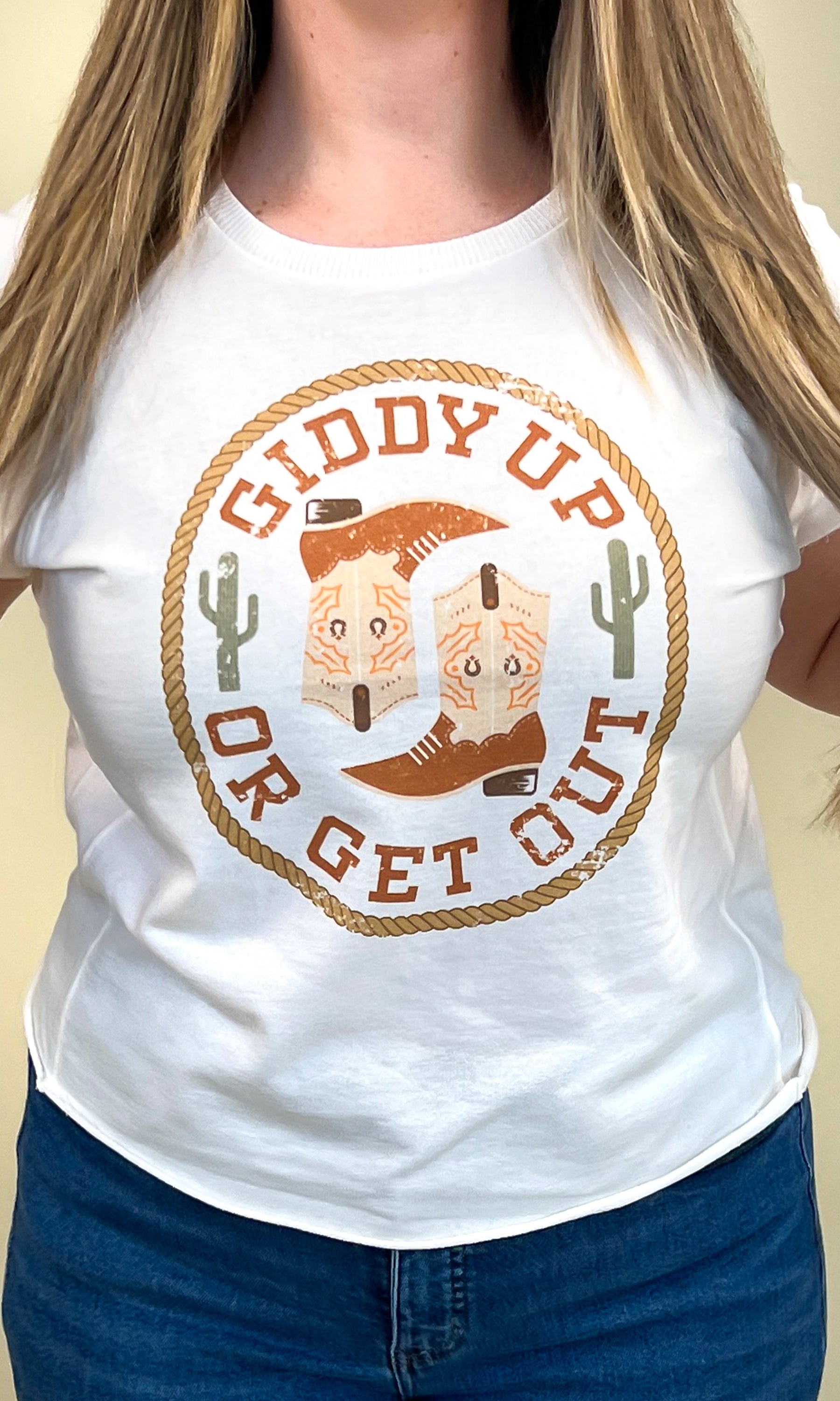 Product Title: Giddy Up or Get Out Edgy Graphic Shirt
