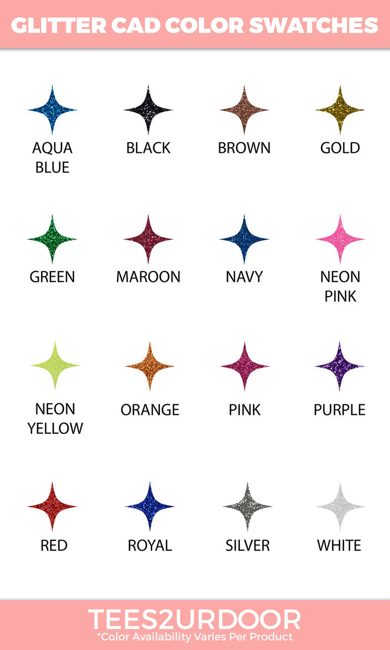 - Trucker hat features your choice of a mascot name across the front in your choice of glitter vinyl color options. Available on a variety of trucker hat colors.