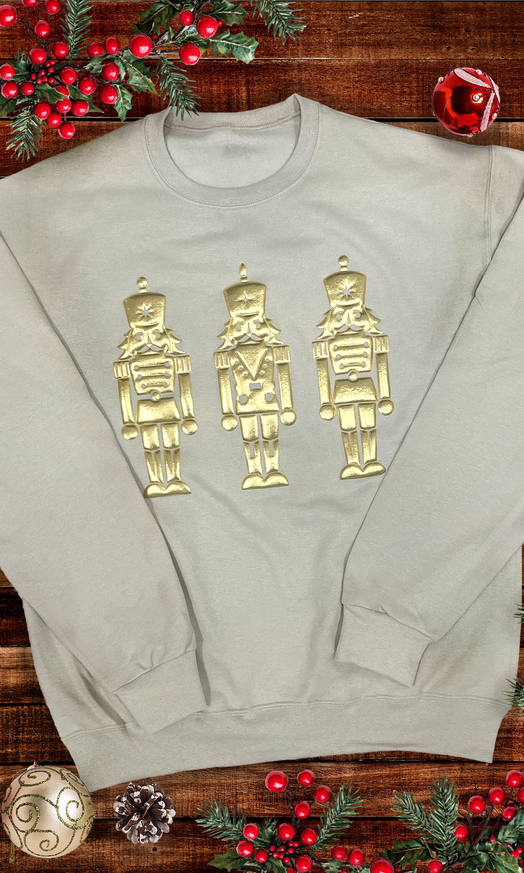 Perfect for holiday parties, family gatherings, or cozy nights in. Embrace the festive spirit and stay stylish this season with the Nutcracker Metallic Puff Graphic Sweatshirt. Order yours today and delight in the magic of the holidays!