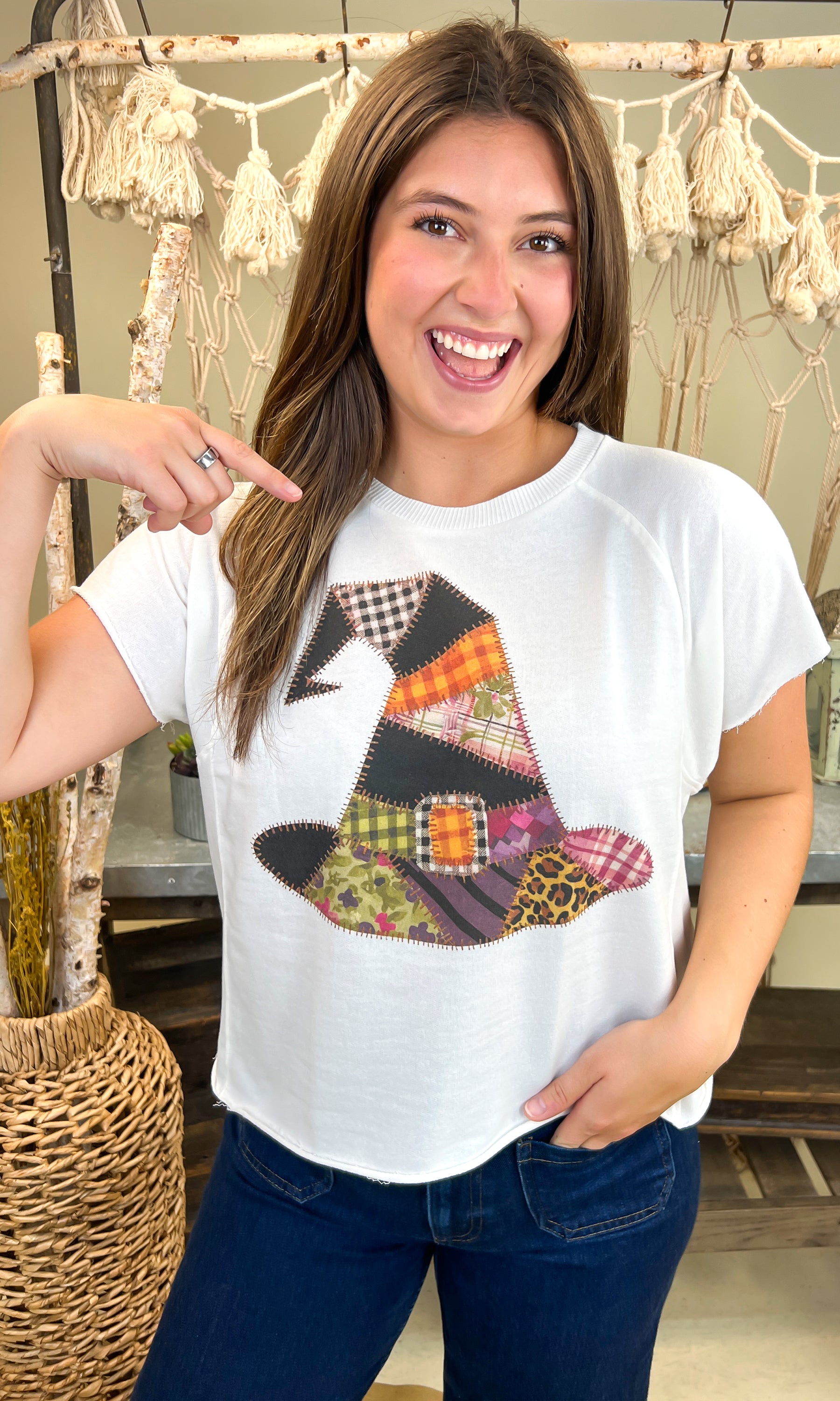 Patchwork Witches Hat Halloween Edgy Graphic Shirt