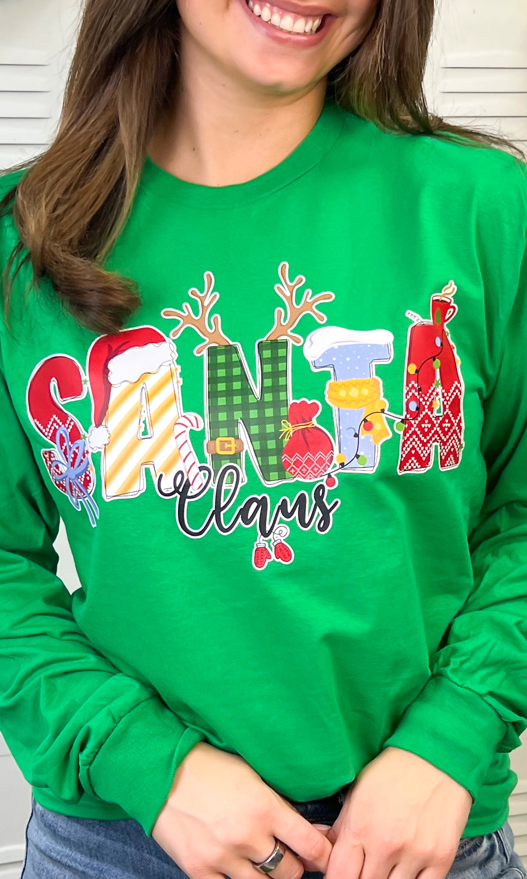 This Santa Doodle Graphic Long Sleeve T-Shirt is perfect for holiday gatherings, family photos, or just lounging at home while sipping on hot cocoa. It's not just a t-shirt; it's a celebration of the season!