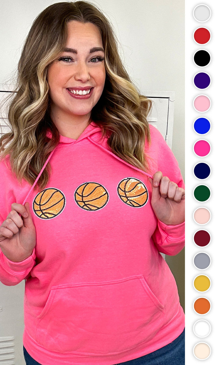 - This sequin patch hoodie's design features three sequin patches of basketballs. This trendy top is perfect for showing your enthusiasm for basketball!