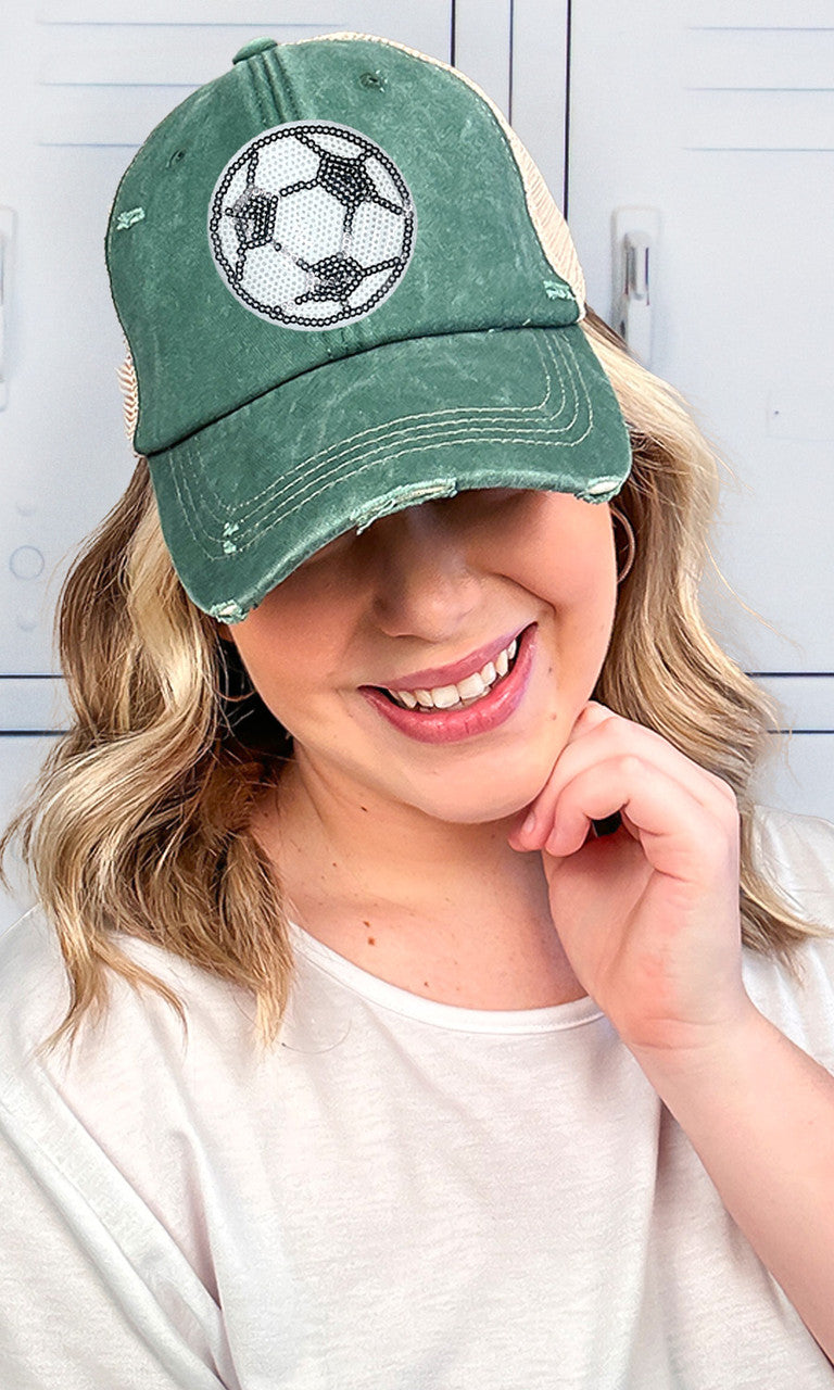 - This sequin patch vintage hat's design features a sequin patch in the image of a soccer ball.