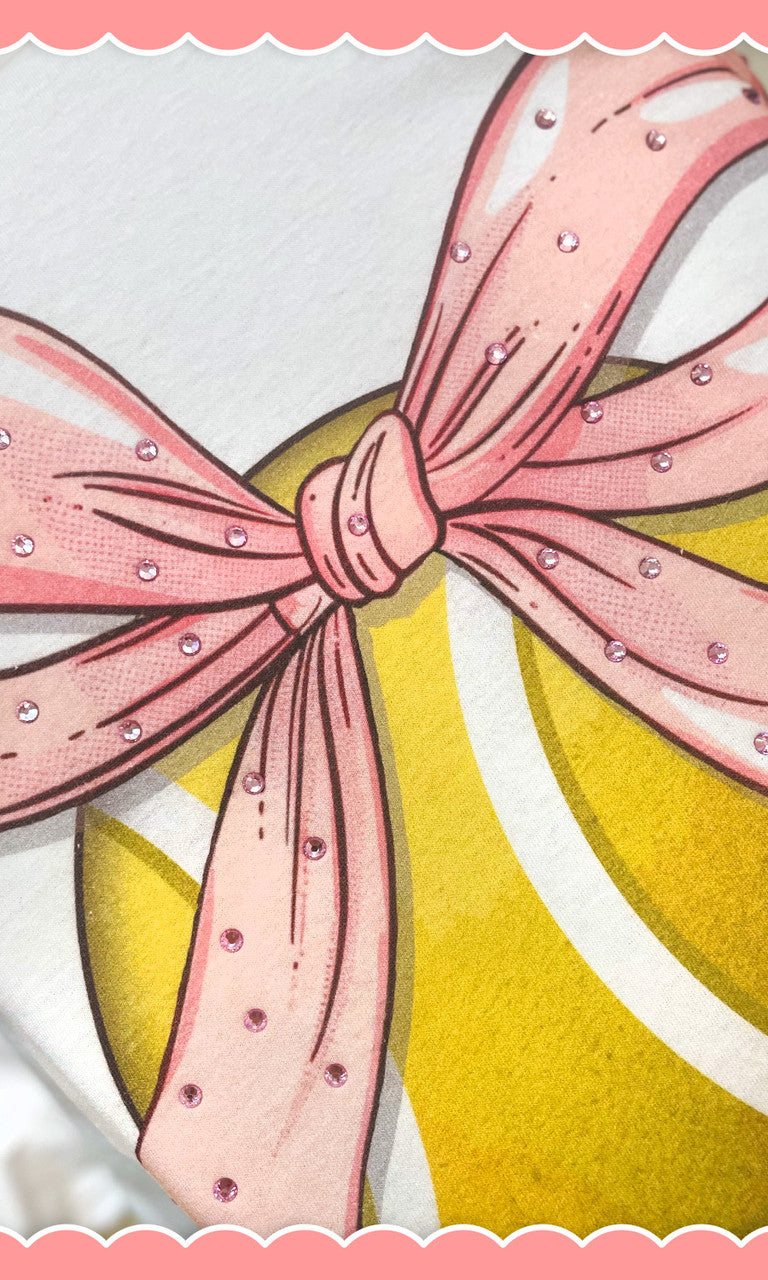Product Title: Tennis Pink Bow Rhinestone Graphic Shirt
