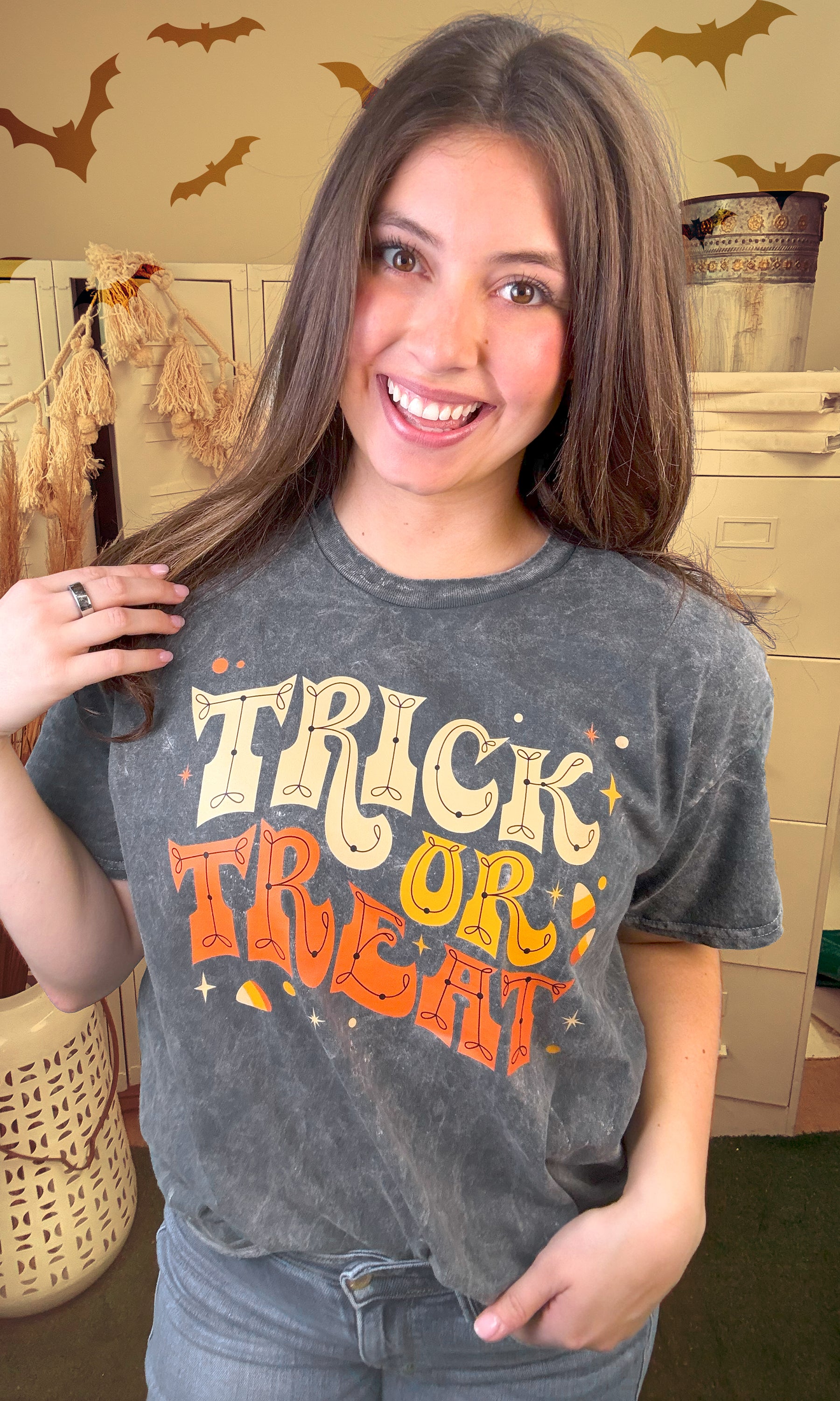 Trick or Treat Halloween Mineral Washed Graphic Shirt
