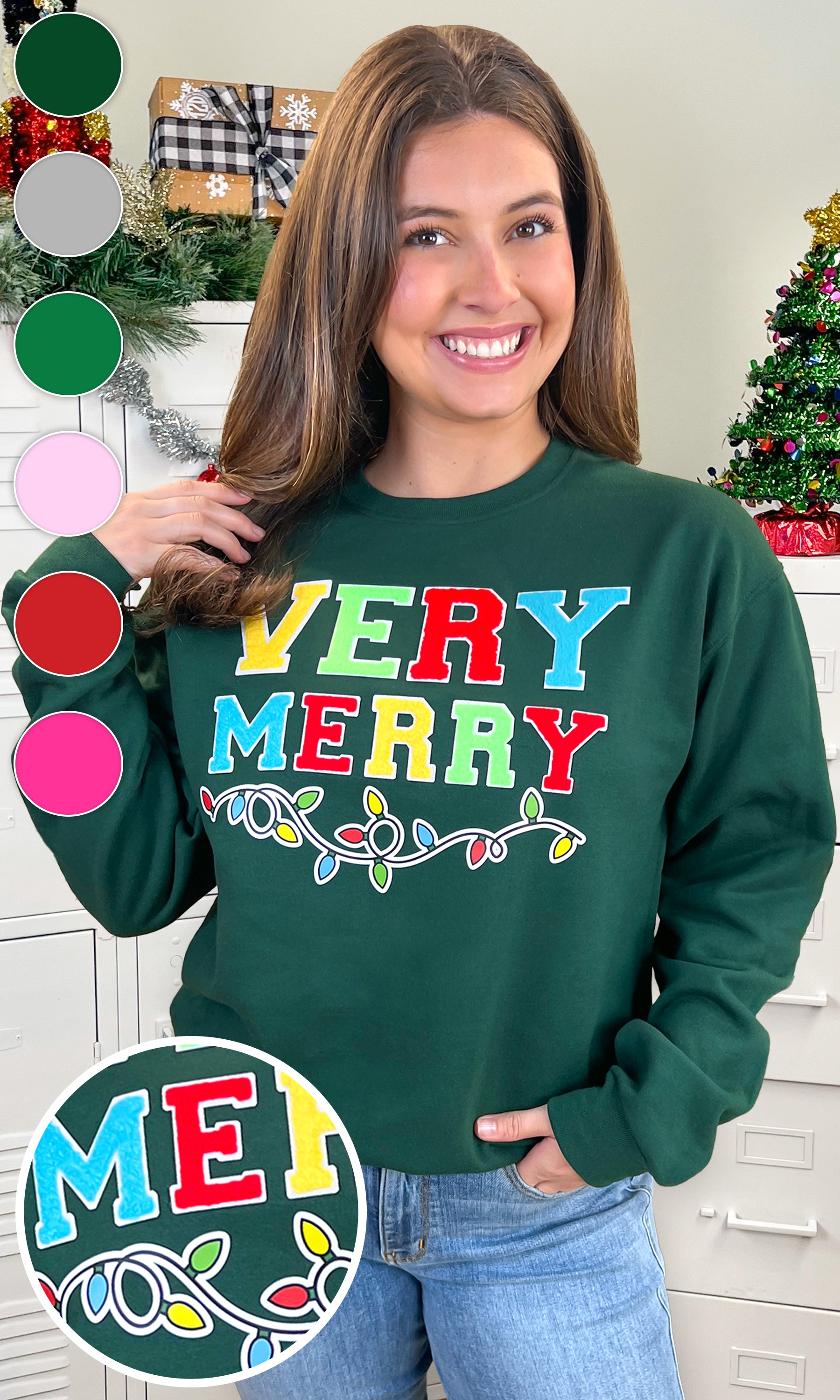 Very Merry Christmas Lights Soft Chenille Graphic Sweatshirt